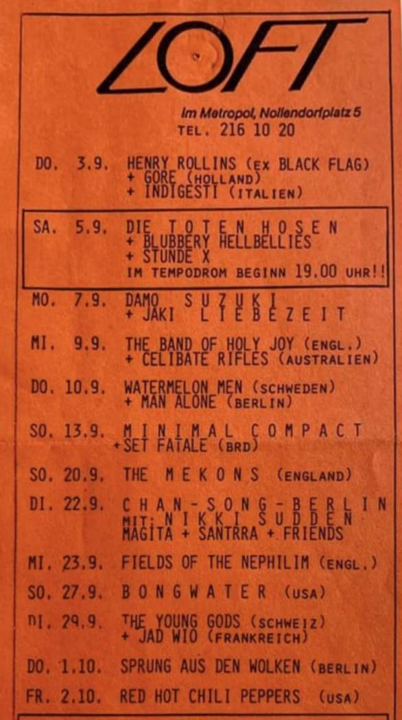23-Nov-86 DE Berlin-Schöneberg,The Loft (im Metropol) [with The Lolitas]