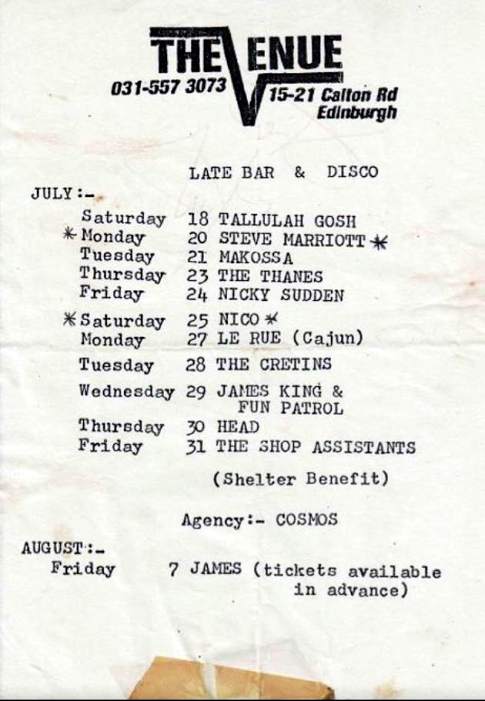 Note: Sound engineer Tony Cohen, who was out of it and completely screwed up the sound. He made it up by joining for the Scottisch gigs to do the sound free of charge.