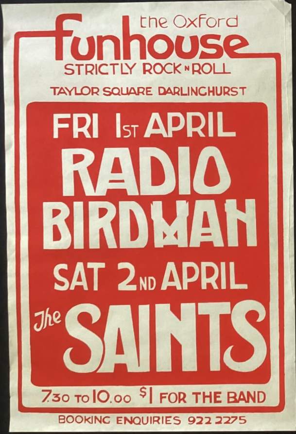 Note 1: "I saw the Saints for the first time in the mid 70s at the Miami Great Hall when they were backing LRB (Little River Band). [Chris Bailey] was on stage singing with the microphone in one hand and a bottle of Whisky in the other. Outrageous at the time and especially when it was in the grounds of Miami State High School." Kevin Rogers Facebook group 'Old Brisbane Album', April 2022. Little River Band were touring the USA in December 1976. Kevin Rogers must have meant AC/DC instead.