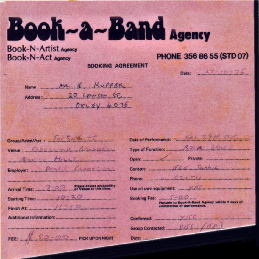Note 1: "[The New Year's Eve] booking got us another, put on by the newly started Queensland FM Radio Station [4ZZZ (as 4ZZ-FM) first went to air on 08-Dec-75], about 500 people turned up, half of who walked out but those who stayed loved it. The guy who booked us was arrested for selling drugs and the guy who took over the station, hated us. So, after a few more moderately successful dates we decided to cut a record ourselves because the record companies didn't want to have anything to do with us." Ed Kuepper in Sniffin' Glue #4 - Punk zine, October 1976.